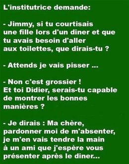 Au restaurant, Monsieur Dupont s’écrit : - Garçon, il y a une mouche qui nage dans mon assiette. - Oh, c’est encore le chef qui a mis trop de potage. D’habitude, elles ont pied ! |