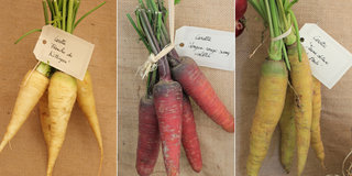 Carotte 'Longue rouge sang violet'. Peau violette et chair rouge au goût relevé.